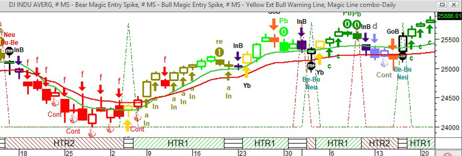 Magic Trader® is a product which represents the travel of current market vehicle prices through various Magic Zone Lines or Magic Zones along with dynamic magic multi-colored candle collection with multi-confirmations, demonstrations of various dimensional risk and creation of multi-dimensional risk spectrum.